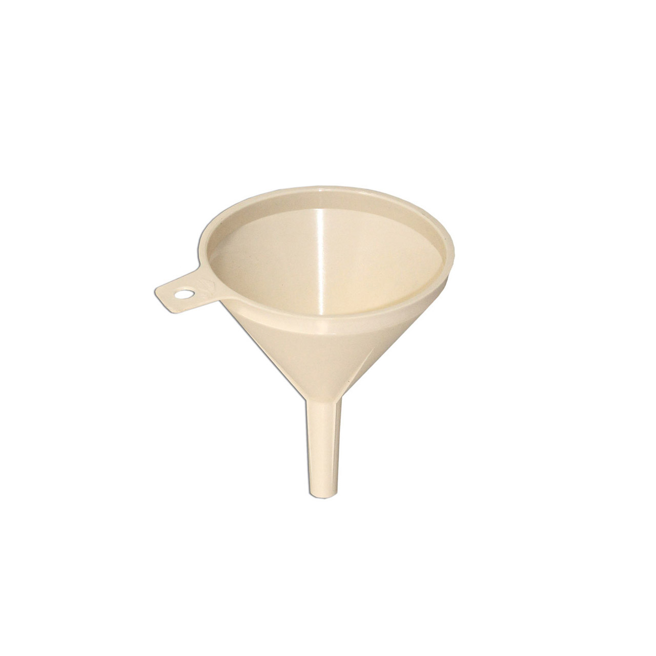 Plastový trychtýř, průměr 14cm, s ouškem, krémová barva