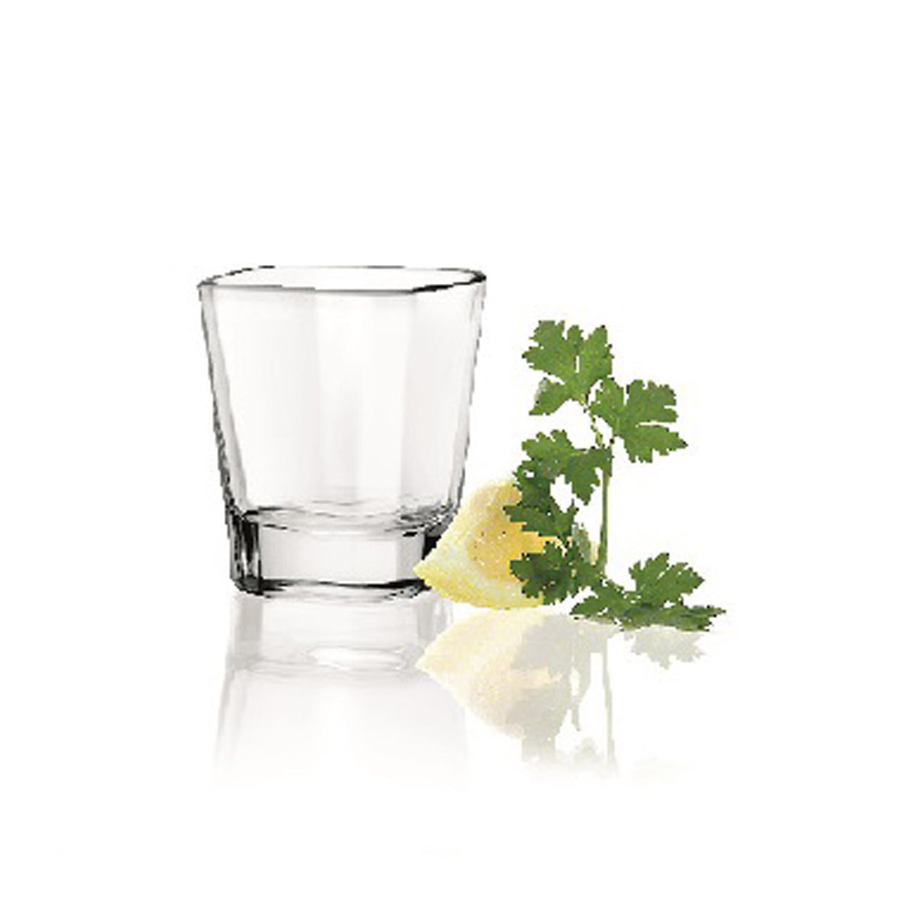 Sklenice (panák) na servis destilátů o objemu 0,06 l.