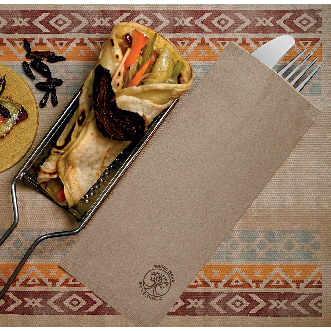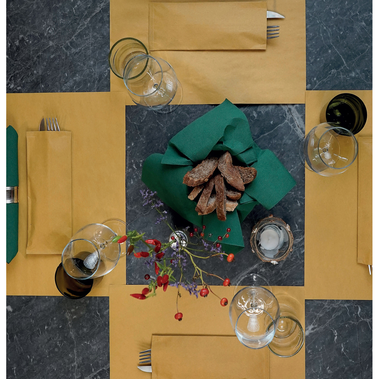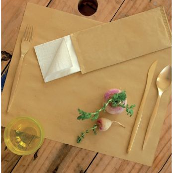 Uzavřená papírová kapsa na příbory 25 x 11 cm s vloženým prémiovým 2vrstvým ubrouskem 38 x 38 cm, sklad na 1/8. Hygienická a rychlá manipulace, praktické přenosné balení kapsiček. Příbory lze vložit a připravit si již předem, odpadají přípravy s chystáním ubrousků. Originální doplněk stolování a praktické řešení i pro venkovní prostírání.