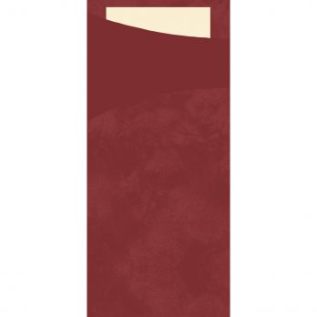 Kapsa na příbor 8,5 x 19 cm s vloženým ubrouskem. Chytrý a hygienický design SACCHETTO vám umožní získat více času pro hosty. Kapsa již obsahuje ubrousek - stačí přidat příbor. V provedení bordó, krémový ubrousek.