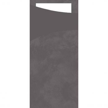 Kapsa na příbor 8,5 x 19 cm s vloženým ubrouskem. Chytrý a hygienický design SACCHETTO vám umožní získat více času pro hosty. Kapsa již obsahuje ubrousek - stačí přidat příbor. V provedení tmavě šedá, bílý ubrousek.