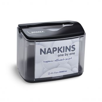Plastový stolní zásobník ubrousků v černé barvě. Ideální do jídelen pro menší spotřebu ubrousků. Vhodné Ubrousek najdete např. pod číslem 100026048 a 100030932.
