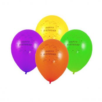 Nafukovací balónek "HAPPY BIRTHDAY" barevný mix o průměru 25 cm `M`. V balení 100 ks.