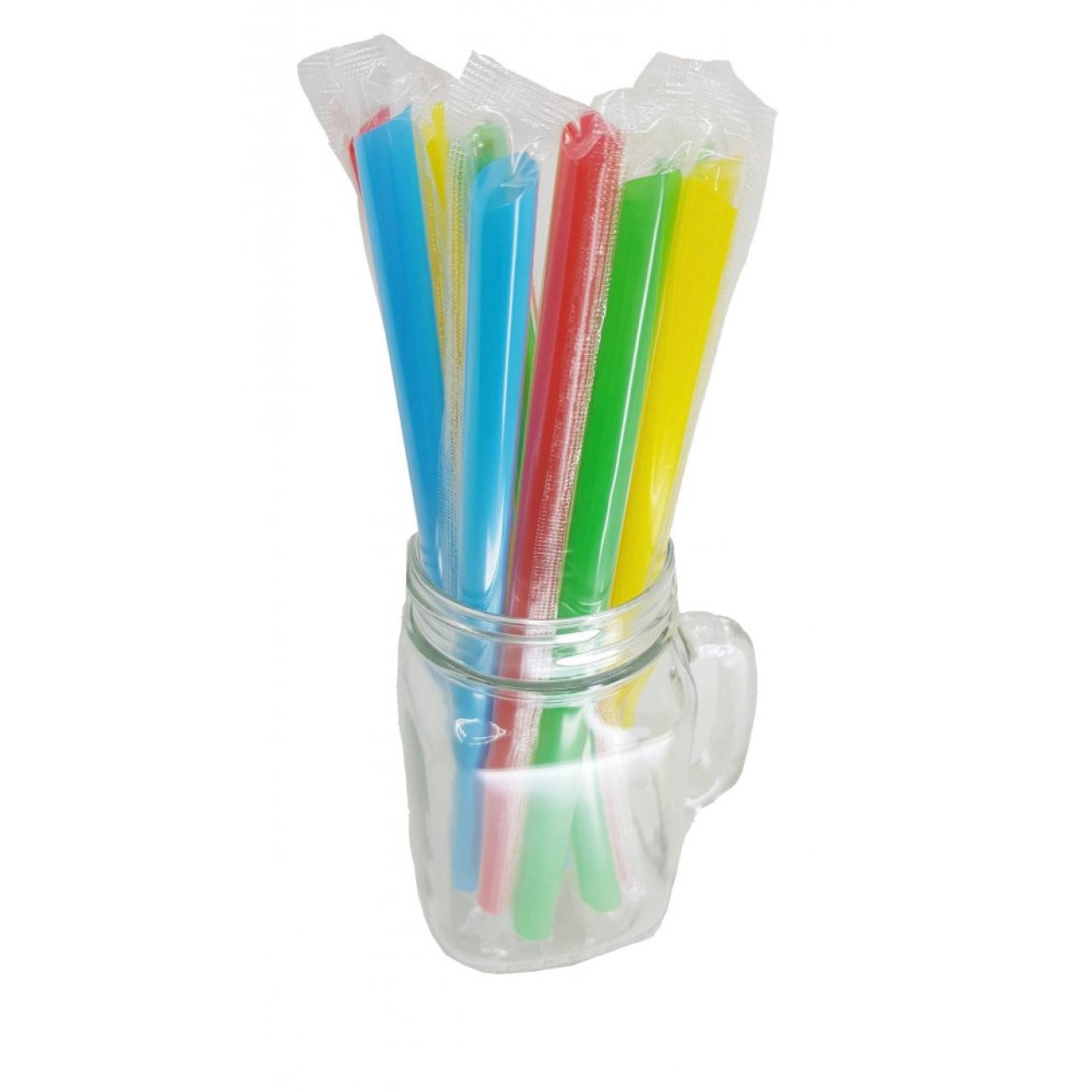 Slámky / brčka BUBBLE TEA 21 cm x 12 mm mix z PP pro opakované použití, 250 ks v balení.