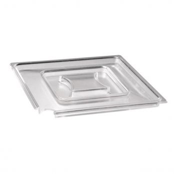 Poklop vyrobený z plastu SAN s výsekem na lžíci, rozměry 25 x 25 cm.
