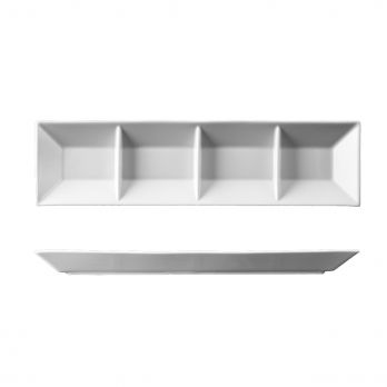 Podno obdélníkový dělený na 4 části o rozměrech 45 x 12 cm. Lze využít i pro rauty a catering.