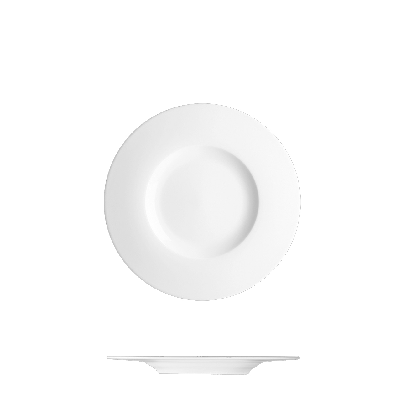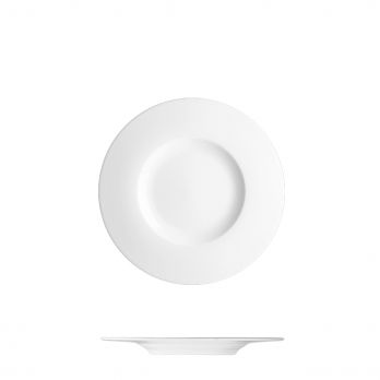 Dezertní talíř o průměru 17 cm v moderním designu se širokým okrajem.