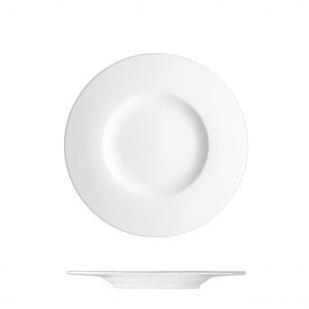 Dezertní talíř o průměru 22 cm v moderním designu se širokým okrajem.