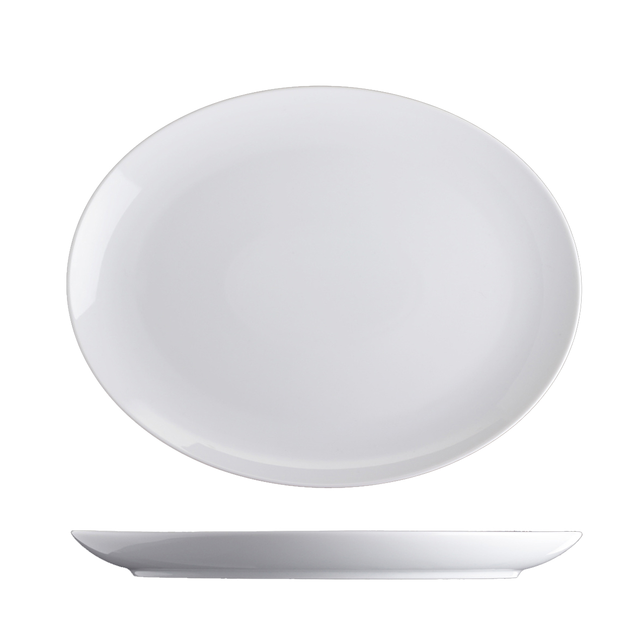 Oválný talíř o průměru 28 cm.