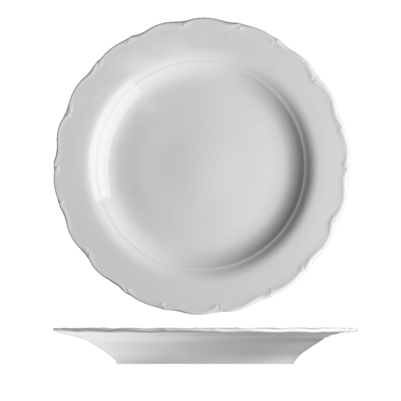 Mělký talíř / mísa o průměru 31 cm s jemným reliéfem.