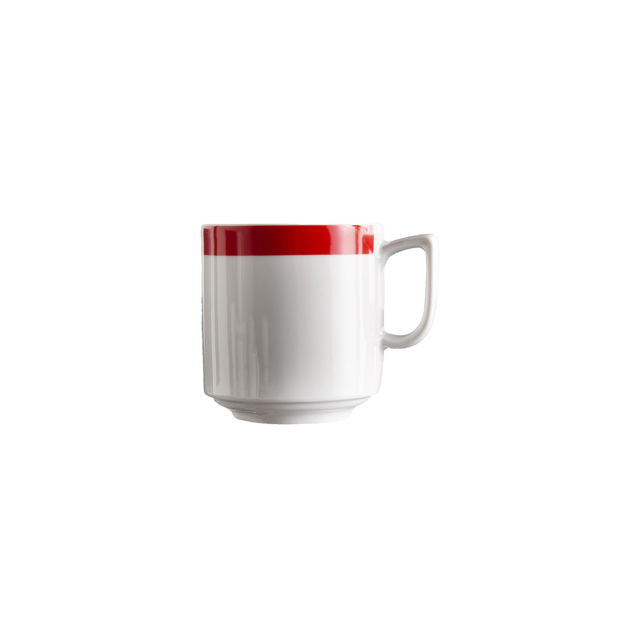Hrnek / šálek o objemu 0,3 l s uchem s červeným okrajem.