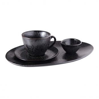 Šálek na kávu o objemu 0,2 l ze série Ebony je vyroben z kvalitního porcelánu a zaujme svým moderním, výrazným vzhledem. Elegantní černá barva v kombinaci s nepravidelnou strukturou povrchu vytváří jedinečný design, díky kterému je každý kus originál a působí velmi stylově a luxusně. Šálek skvěle vynikne jak v gastronomii, tak při moderním stolování doma.