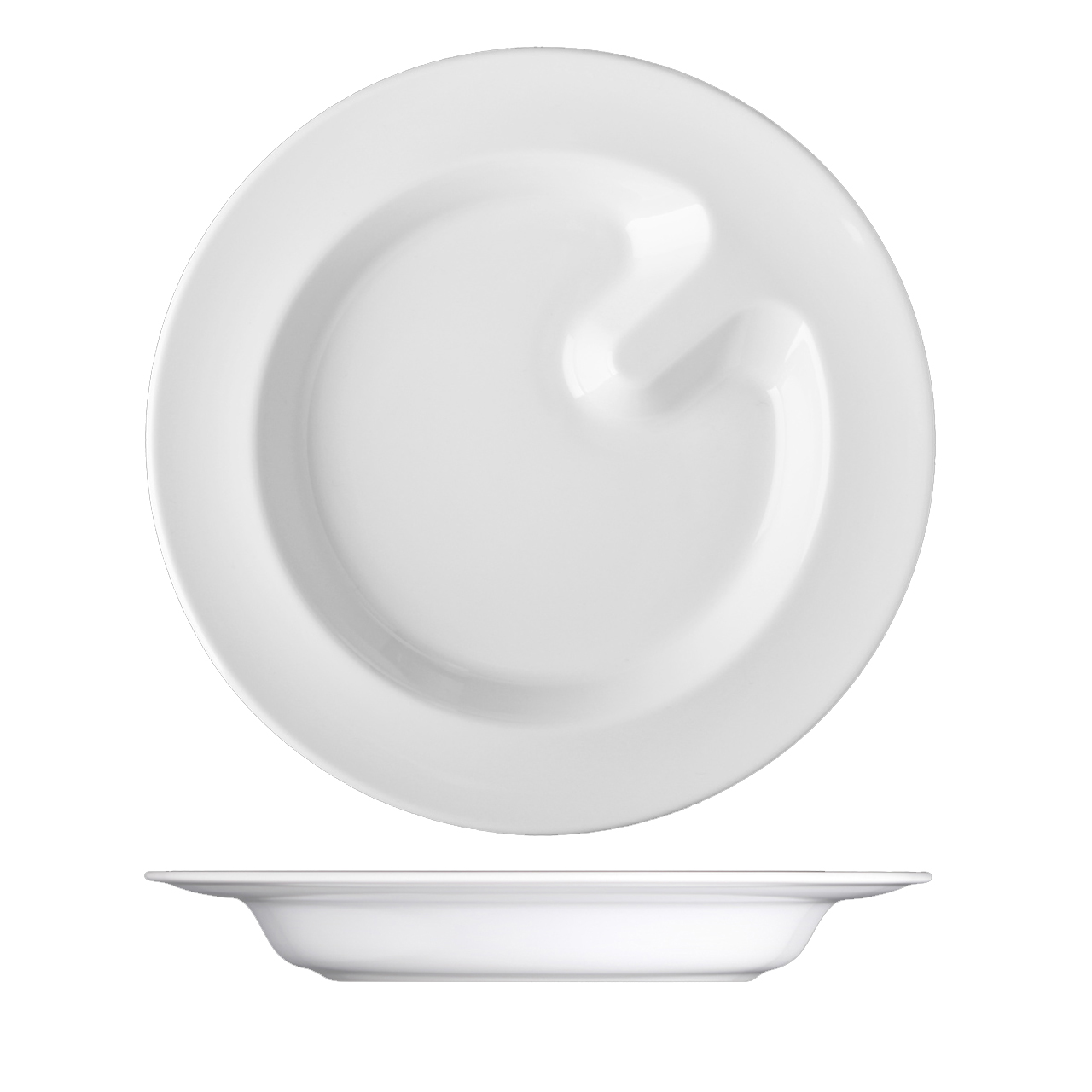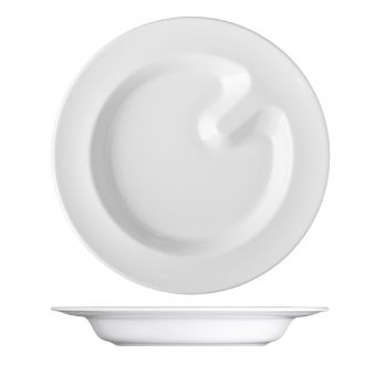 Speciální polohluboký talíř o průměru 26 cm. Díky speciálním detailům, jako jsou např. zarážky na talířích pro snadné nabírání soust je porcelán ACTIVE určen lidem s motorickými obtížemi i seniorům.