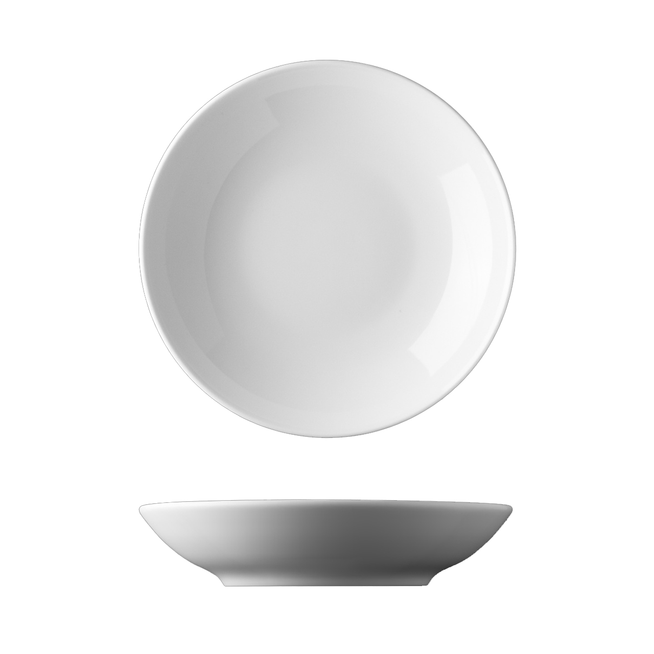 Hluboký talíř bez okrajů o průměru 13 cm.