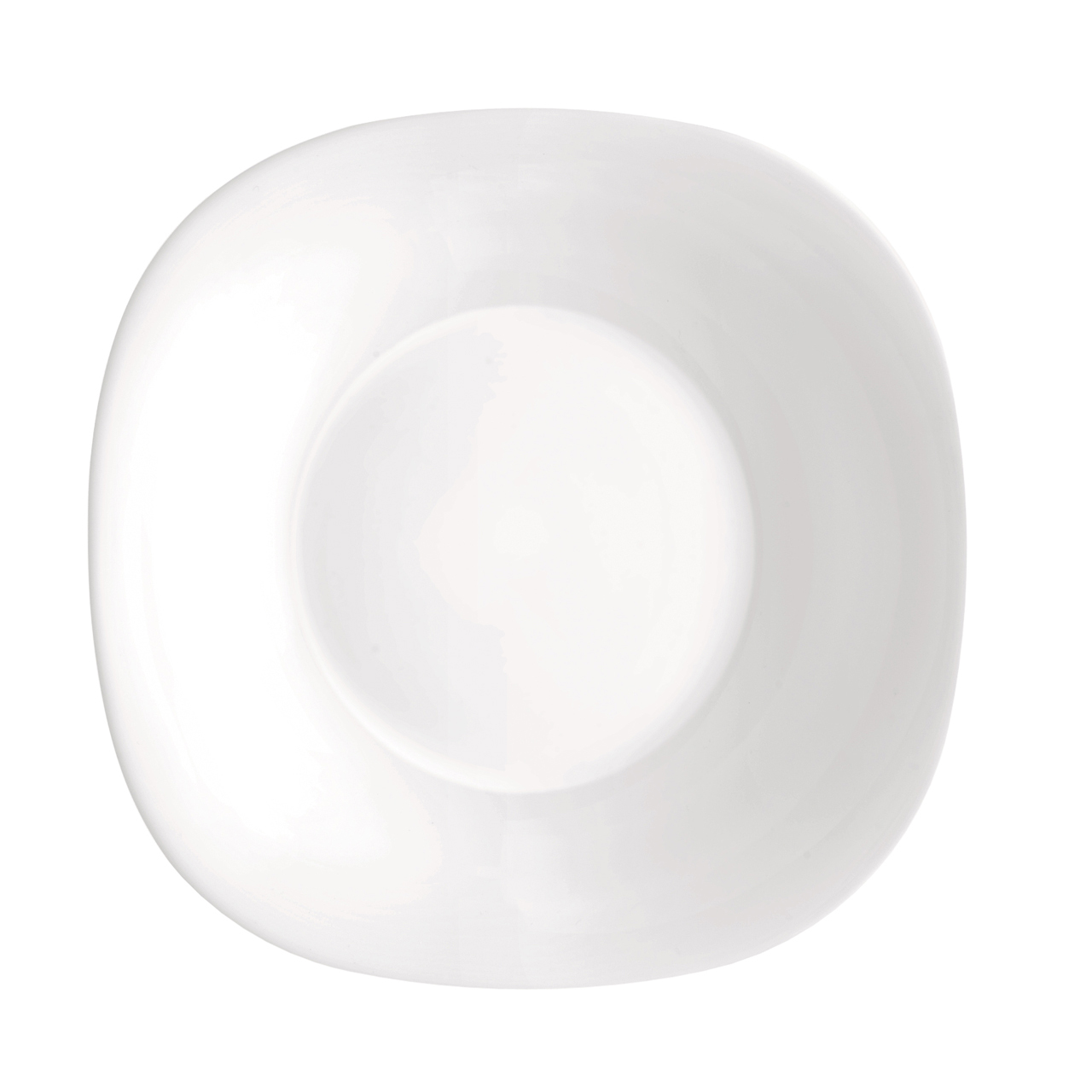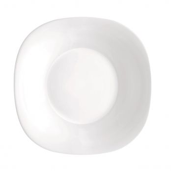 Talíř hranatý hluboký o rozměrech 23 x 23 cm z opálového skla.
