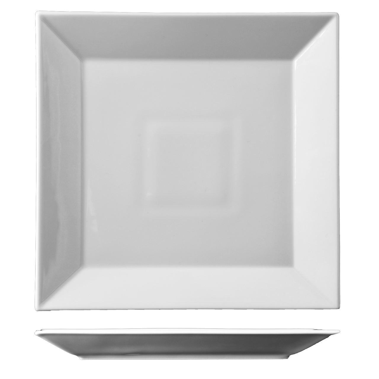 Hranatý mělký talíř v moderním designu o průměru 27 cm.
