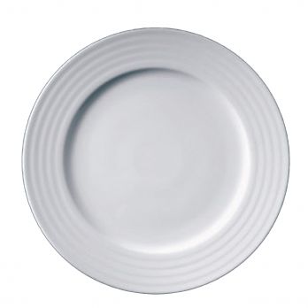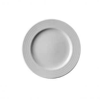 Mělký talíř o průměru 24 cm s reliéfem na okraji.