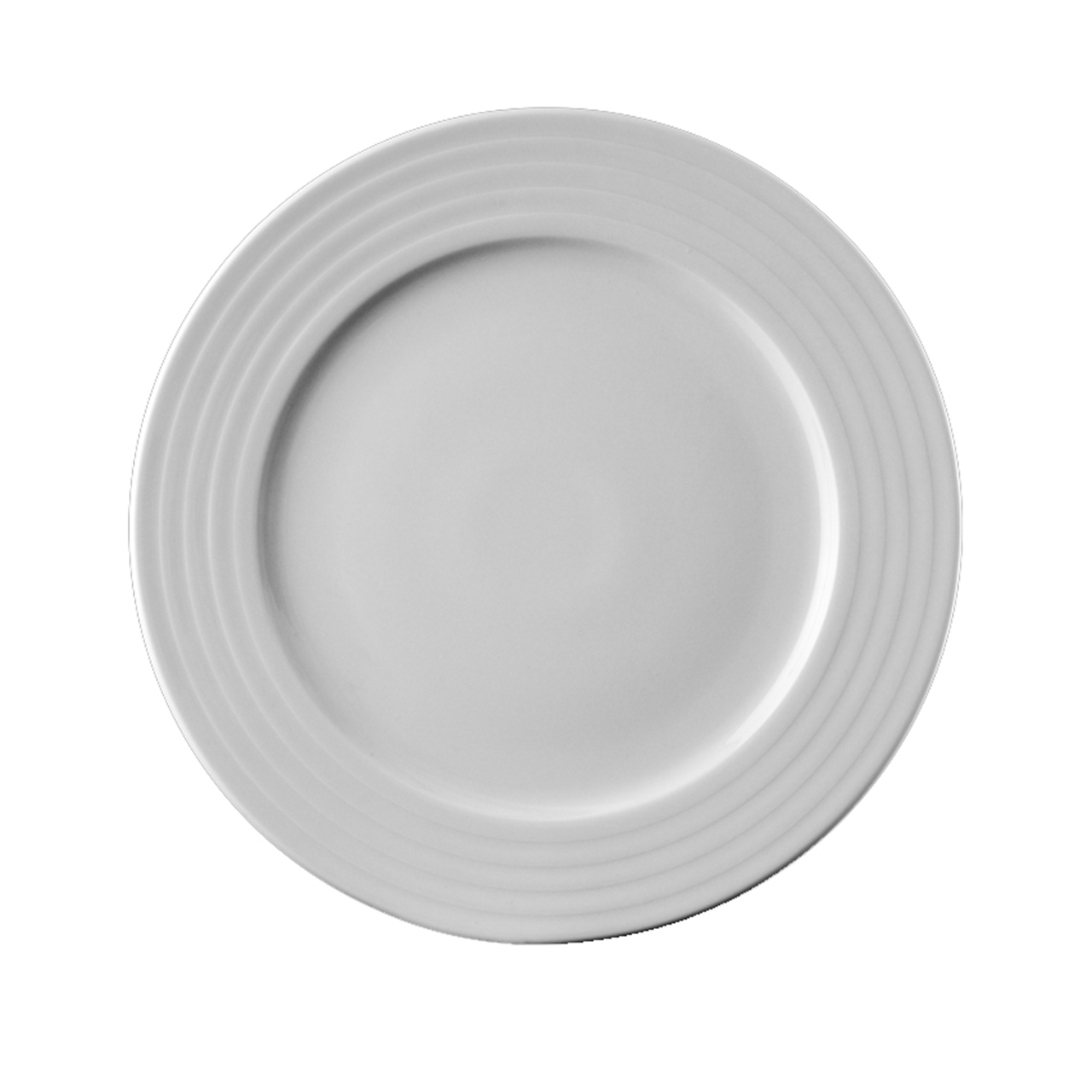 Mělký talíř o průměru 31 cm s reliéfem na okraji.