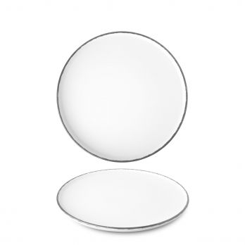 Talíř o průměru 26 cm s šedou linkou. Ručně malovaný porcelán.