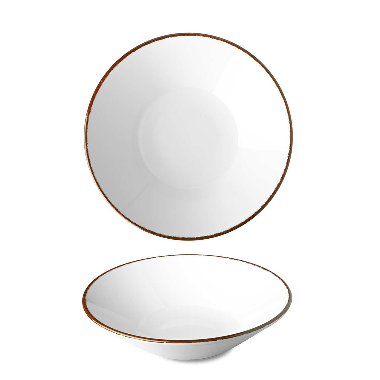 Kónický talíř na pastu, polévku i salát o průměru 27 cm. Hnědá linka - ručně malovaný porcelán.
