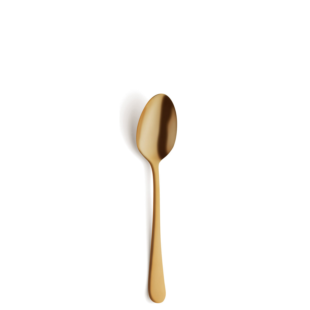 Dezertní lžíce z nerezové oceli 18/0 se zlatou povrchovou úpravou, která propůjčuje příboru moderní luxusní vzhled. Povrchová úprava PVD - příbor má tenký titanový povlak, který nabízí živé barvy.