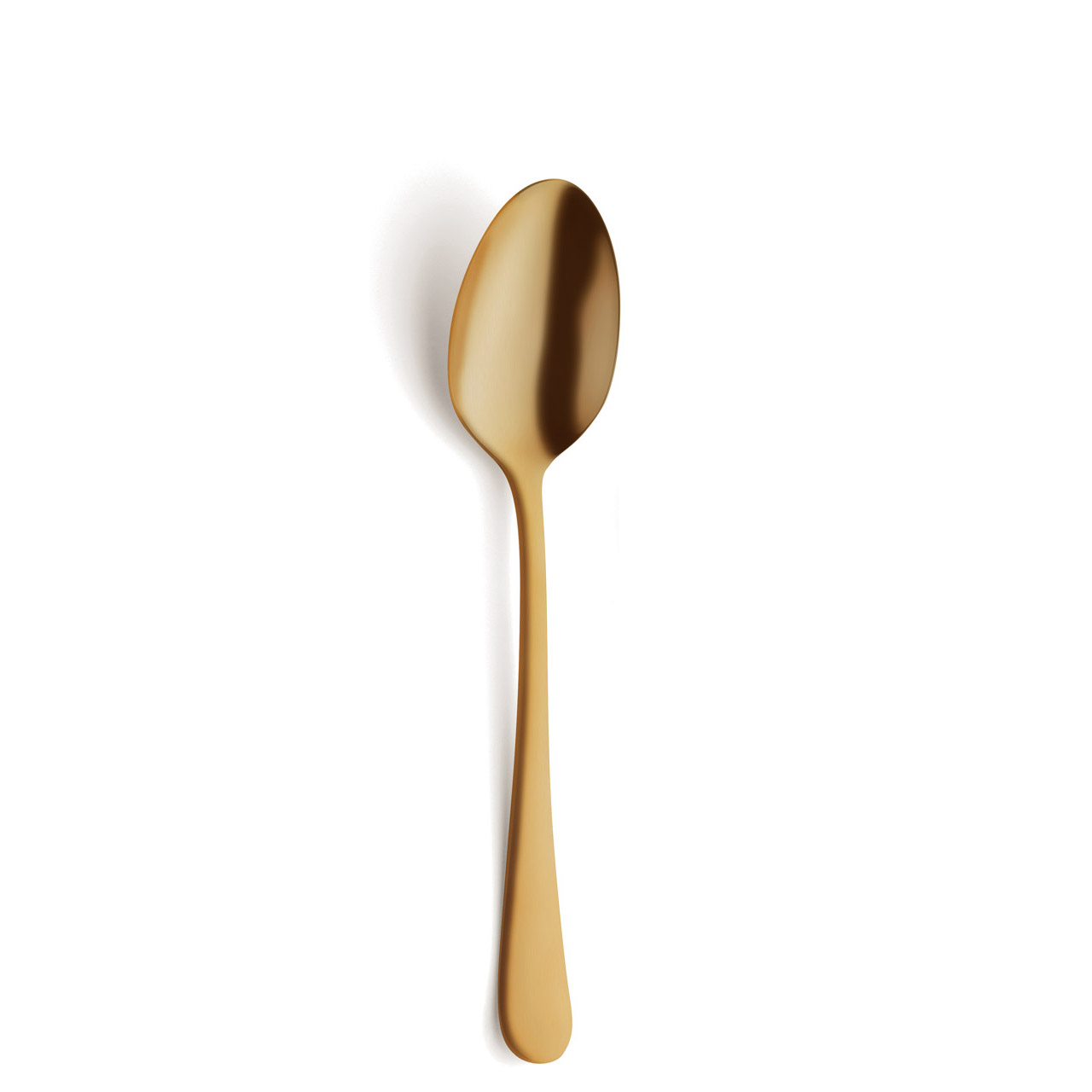 Jídelní lžíce z nerezové oceli 18/0 se zlatou povrchovou úpravou, která propůjčuje příboru moderní luxusní vzhled. Povrchová úprava PVD - příbor má tenký titanový povlak, který nabízí živé barvy.