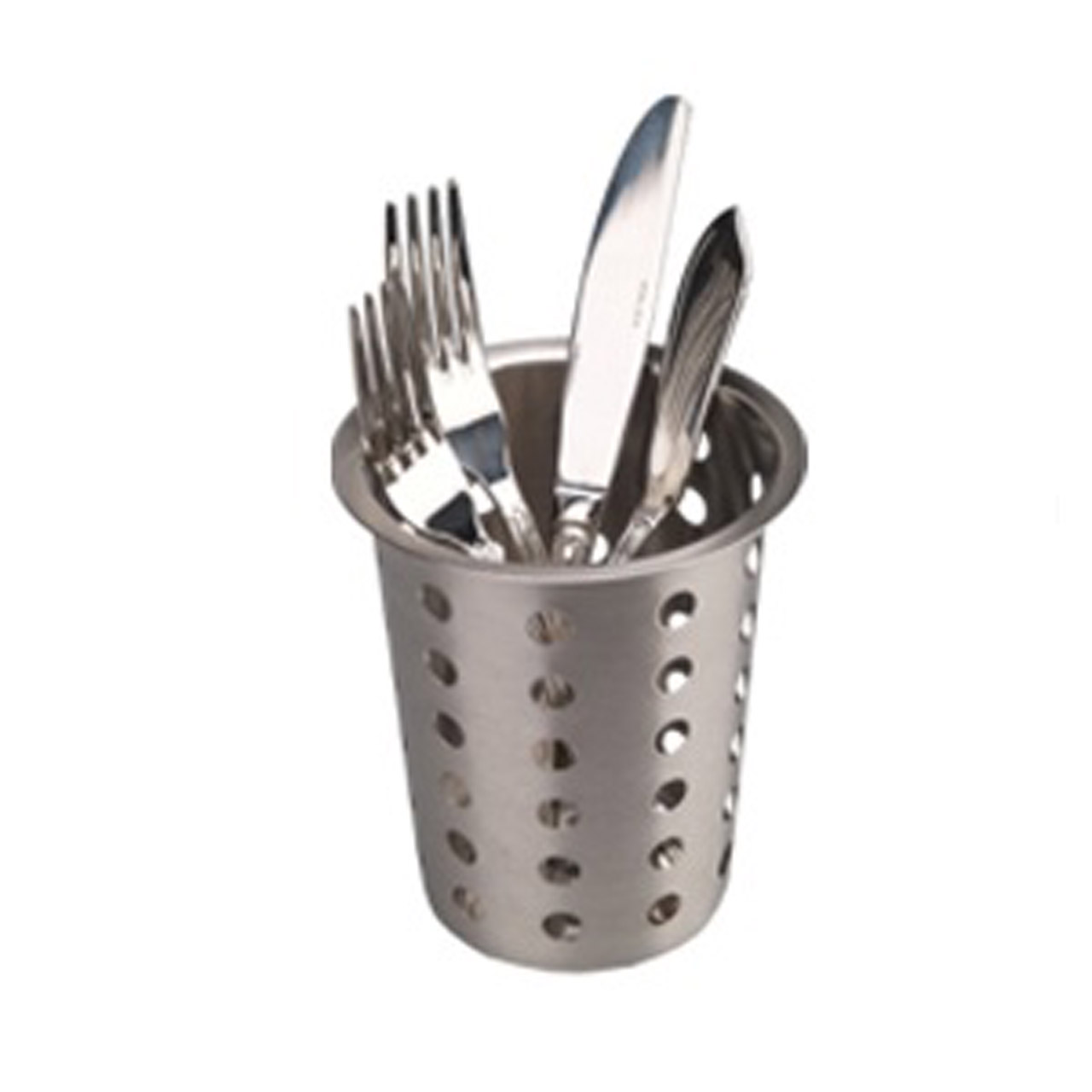 Košík na příbory, průměr 11,5 cm, výška 12 cm, perforovaný, nerez. Ideální pro profesionální použití v gastronomii. Vysoce kvalitní materiál zajišťuje dlouhou životnost a spolehlivost.
