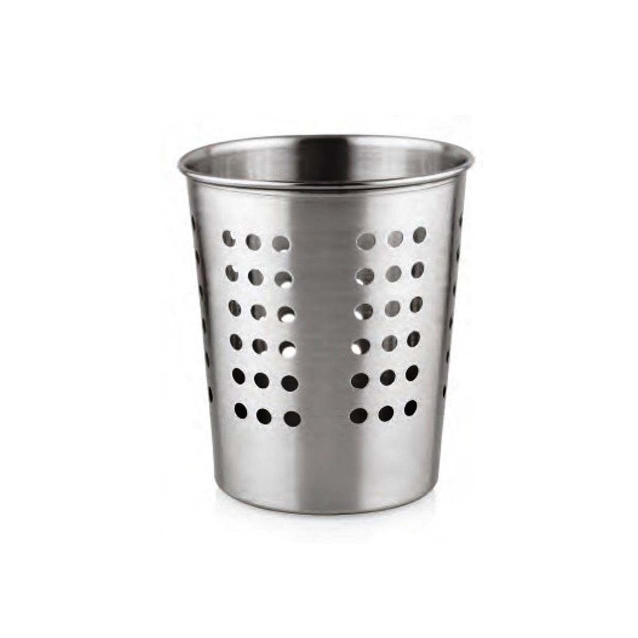 Stojan na příbory s otvory nerez. Průměr 10 cm a výška 12 cm.