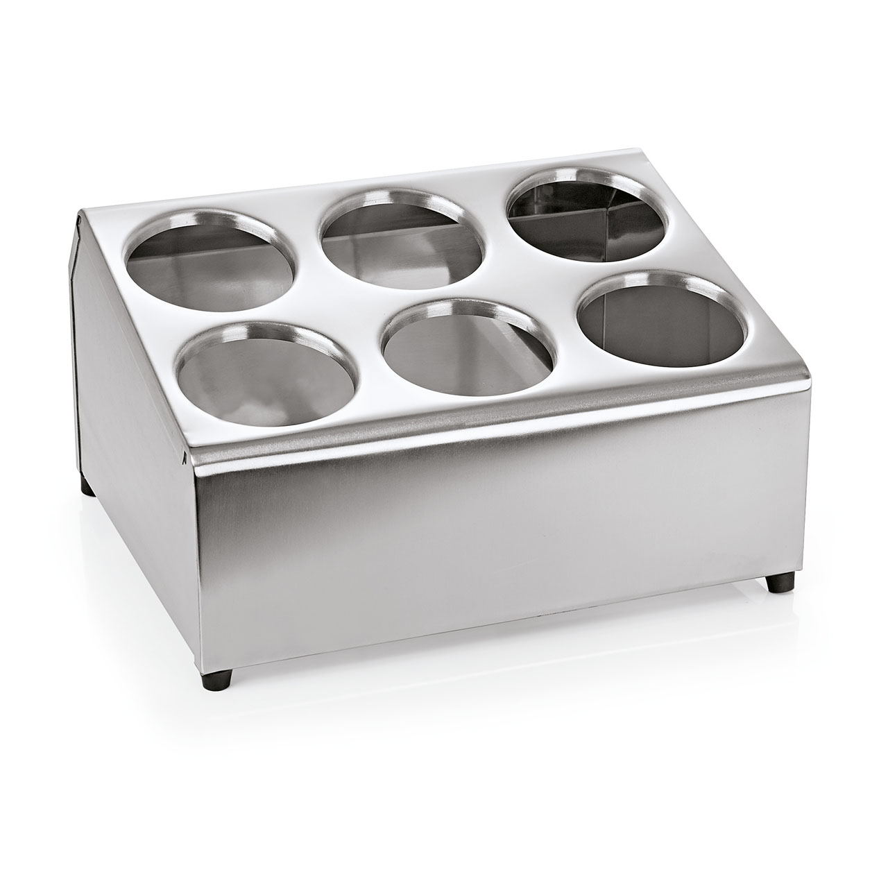 Stojan pro 6 zásobníků na příbory, nerezový.