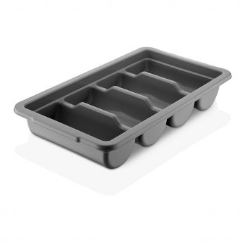 Praktický zásobník na příbory v šedé barvě, se čtyřmi přihrádkami. Je možné opatřit víčkem číslo 100031410.