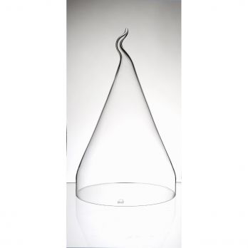 Skleněný kloš vyrobený z borosilikátového skla, čirý, foukaný, ručně upravený.