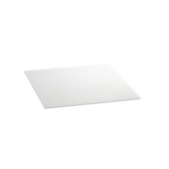 Speciální tvrzené bezpečnostní sklo, bílé, zaoblené a leštěné hrany, vhodné do myček, součástí jsou gumové nožičky, vrchní strana odolná proti poškrábání, síla 4 mm.