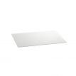 Speciální tvrzené bezpečnostní sklo, bílé, zaoblené a leštěné hrany, vhodné do myček, součástí jsou gumové nožičky, vrchní strana odolná proti poškrábání, síla 4 mm.
