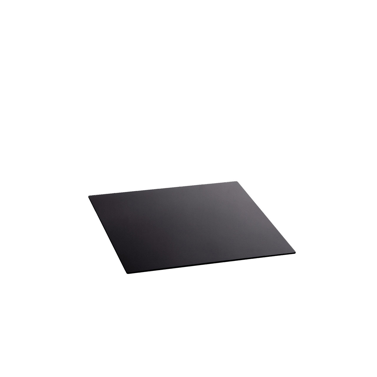 Speciální tvrzené bezpečnostní sklo, černé, zaoblené a leštěné hrany, vhodné do myček, součástí jsou gumové nožičky, vrchní strana odolná proti poškrábání, síla 4 mm.