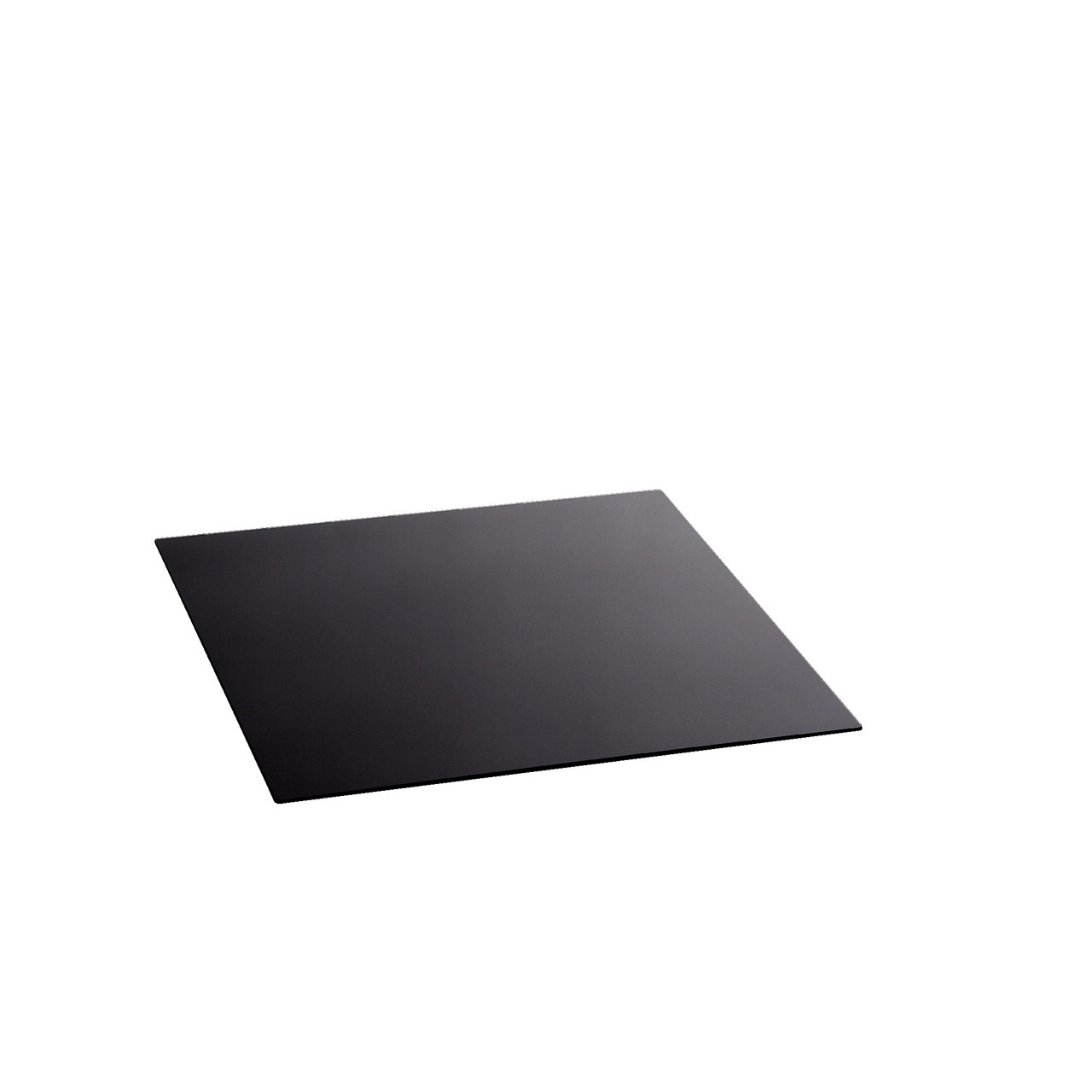 Speciální tvrzené bezpečnostní sklo, černé, zaoblené a leštěné hrany, vhodné do myček, součástí jsou gumové nožičky, vrchní strana odolná proti poškrábání, síla 4 mm.