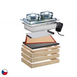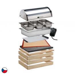 Univerzální bufetový systém z kvalitního bukového dřeva nabízí široké možnosti sestavení díky stavebnicovému řešení. Buk je přírodní, ekologický materiál s krásnou kresbou, příjemnou vůní a vysokou odolností. Povrch je chráněn zdravotně nezávadným lakem s certifikací pro styk s potravinami. Základem systému je spodní a horní rám, na které lze vkládat různé nástavby ve velikosti GN 1/1 podle aktuálních potřeb. Pro zvýšení sestavy jednoduše přidáte další rám. Systém je mimořádně variabilní – snadno sestavíte neutrální, chlazený nebo vyhřívaný modul. Ideální řešení pro hotely, catering a profesionální gastro provozy.