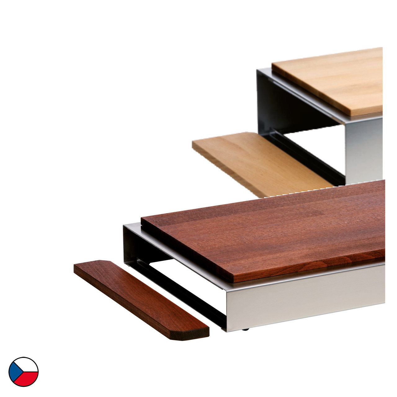 Boční kryt slouží k bočnímu uzavření nízkého nerezového rámu. Bočnice je vyrobena z bukového dřeva přírodního vzhledu. Vrchní vrstva je lakovaná nezávadným lakem, který je vhodný pro styk s potravinou.
