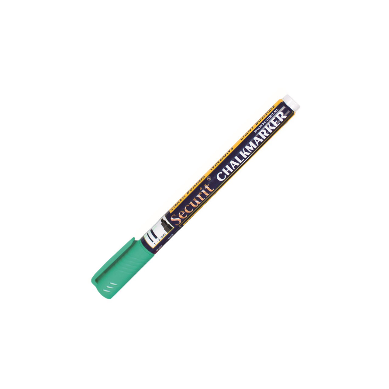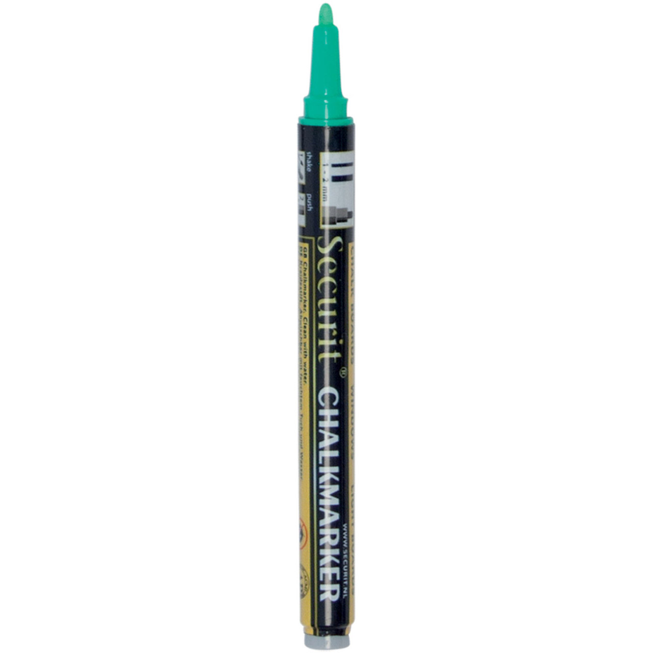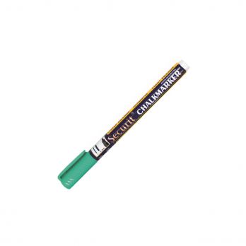 Křídový mikro popisovač, šířka hrotu: 1 - 2 mm, zelený. Po uschnutí je odolný proti rozmazán, vyblednutí nebo smytí slabým deštěm. Čistí se houbičkou.