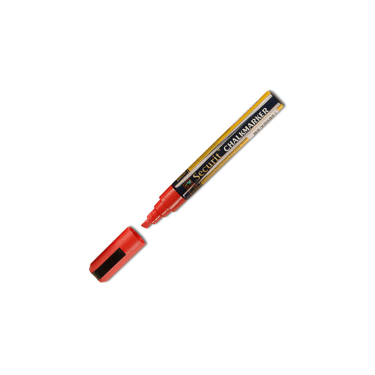 Křídový střední popisovač, šířka hrotu: 2 - 6 mm, červený. Po uschnutí je odolný proti rozmazán, vyblednutí nebo smytí slabým deštěm. Čistí se houbičkou.