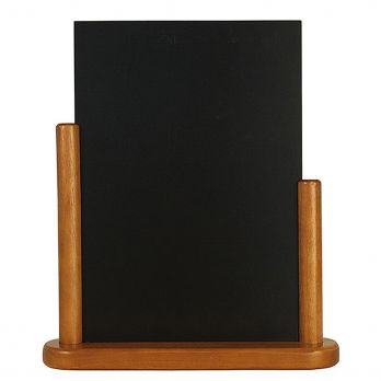 Stolní nabídková tabule má stojánek a rámeček z tvrdého kvalitního dřeva s povrchovou úpravou odolnou proti povětrnostním podmínkám. Povrch tabulek je neporézní, ideální pro použití křídových popisovačů. Napsané texty jsou v této kombinaci odolné působení vody, rozmazání a ušpinění při běžném používání. Rozměry popisovací plochy 10 x 15 cm. Provedení Teak.
