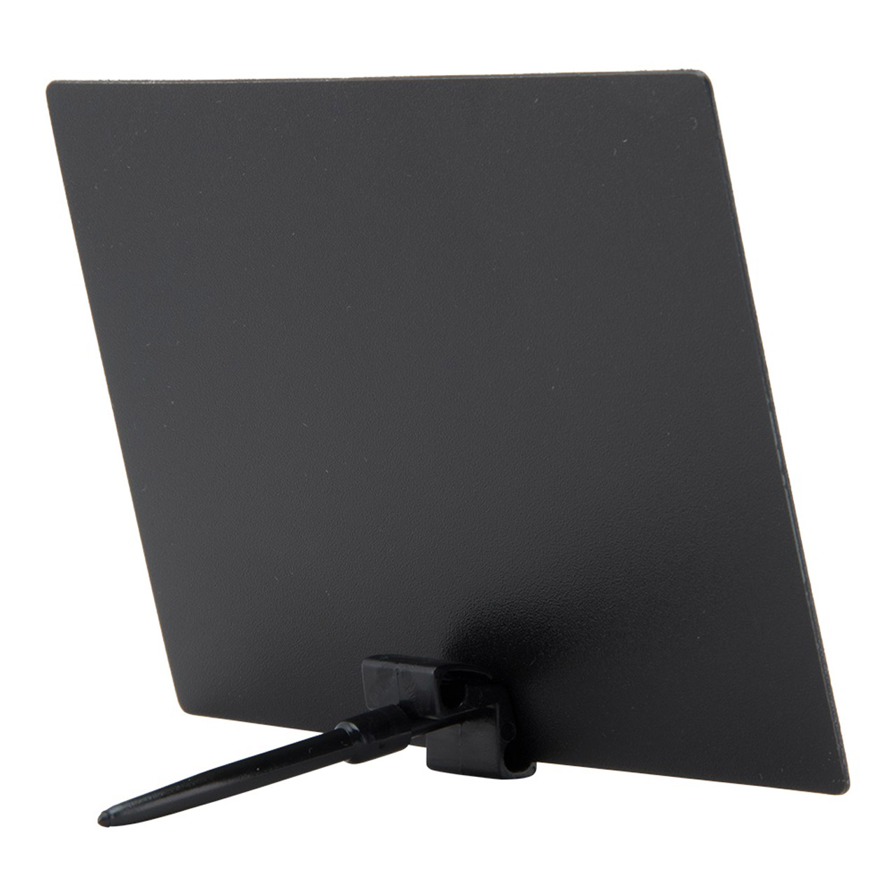 Doplňkové popisovací černé plastové tabulky velikosti A6. Tabulky se prodávají v sadě po 20 ks. Součástí této sady je jeden bílý popisovač , 4 zapichovací a 2 transparentní stojánky.