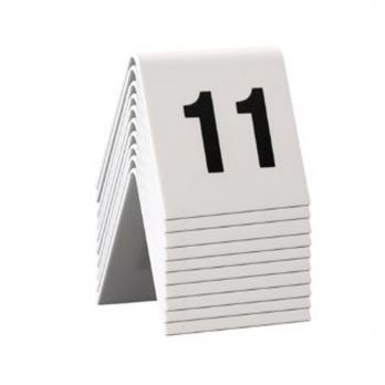 Rozlišovací tabulky na stůl. Jsou vyrobeny z plastu bílé barvy s černými číslicemi 11 až 20.