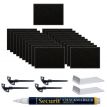 Součástí této sady je jeden bílý popisovač SECURIT, 4 zapichovací a 2 transparentní stojánky.