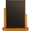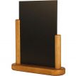 Stolní nabídková tabule má stojánek a rámeček z tvrdého kvalitního dřeva s povrchovou úpravou odolnou proti povětrnostním podmínkám. Povrch tabulek je neporézní, ideální pro použití křídových popisovačů. Napsané texty jsou v této kombinaci odolné působení vody, rozmazání a ušpinění při běžném používání. Rozměry popisovací plochy 15 x 21 cm. Provedení Teak.