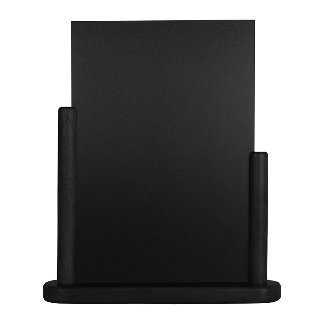 Stolní nabídková tabule má stojánek a rámeček z tvrdého kvalitního dřeva s povrchovou úpravou odolnou proti povětrnostním podmínkám. Povrch tabulek je neporézní, ideální pro použití křídových popisovačů. Napsané texty jsou v této kombinaci odolné působení vody, rozmazání a ušpinění při běžném používání. Rozměry popisovací plochy 21 x 30 cm. Provedení Black.