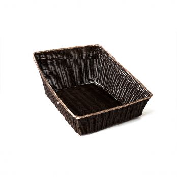 Koš na pečivo zkosený z polyratanu, omyvatelný. Tmavá barva. Rozměr 61 x 46 cm, výška 25 - 14 cm.