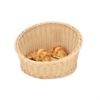 Kulatý koš ze světlého polypropylenového ratanu o průměru 36 cm, výška 10 až 20 cm. Snadná údržba, lze mýt v myčce.
