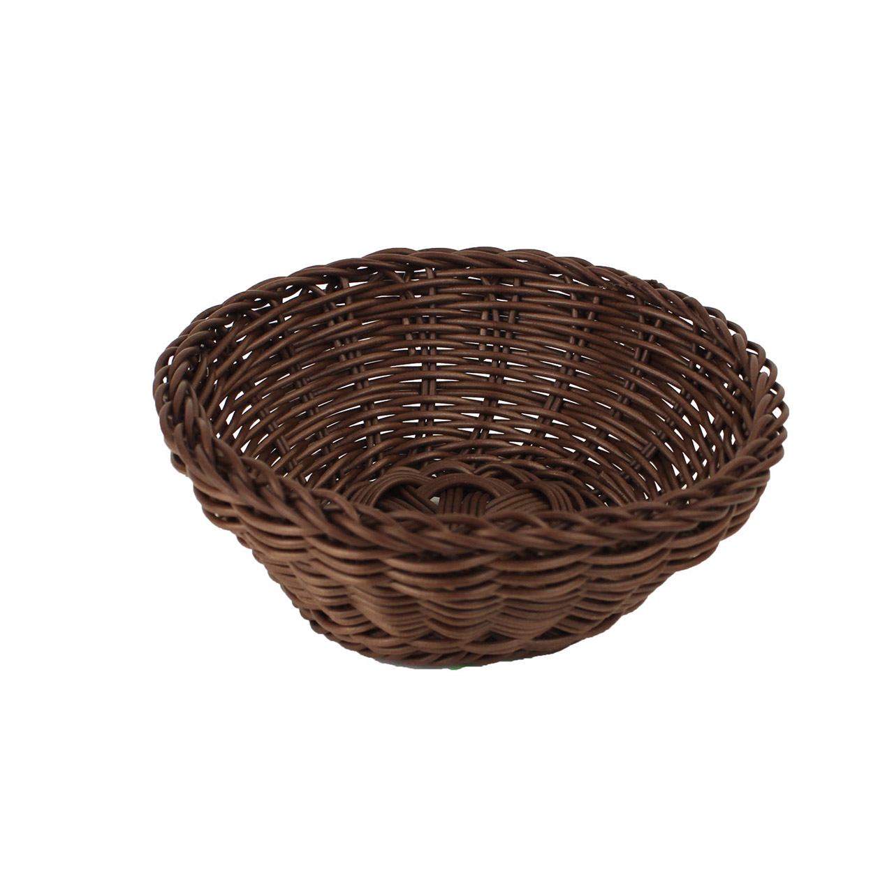 Plastový košík hnědé barvy. Košík má průměr 20 cm a výšku 8,5 cm.