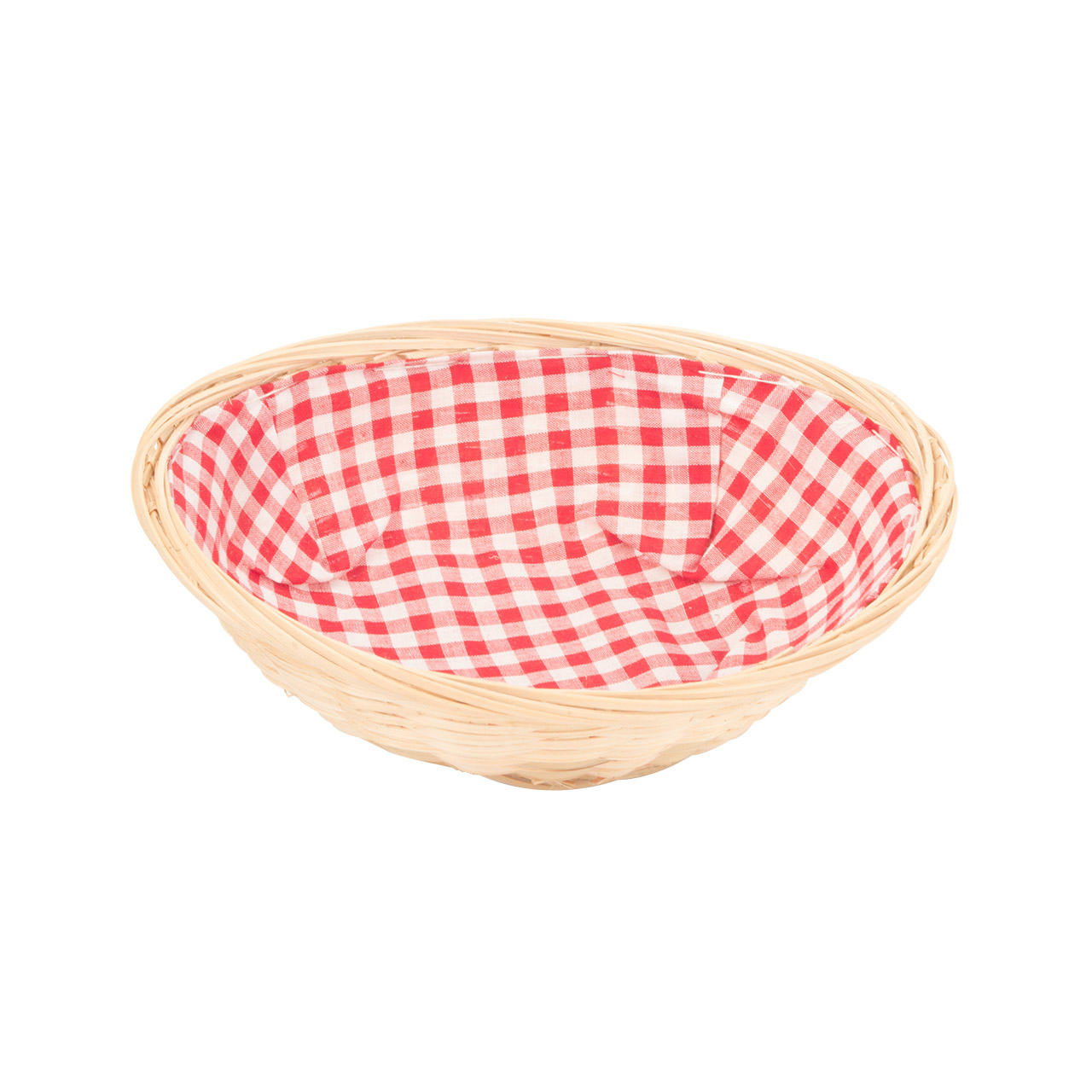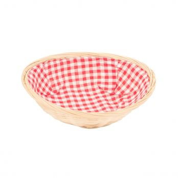 Košík proutěný na pečivo oválný s látkou. Rozměr 24 x 7 cm.