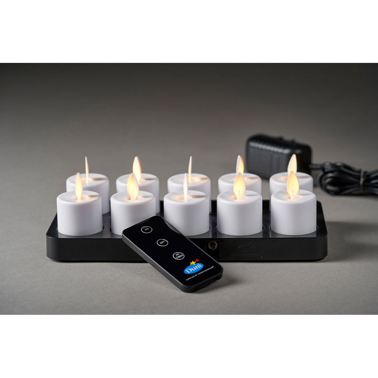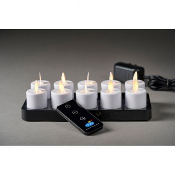 Svíčky LED s možností nabíjení - 10 kusů včetně nabíjecí stanice a dálkového ovládání. Hřejivá bílá s mihotavým plamenem.